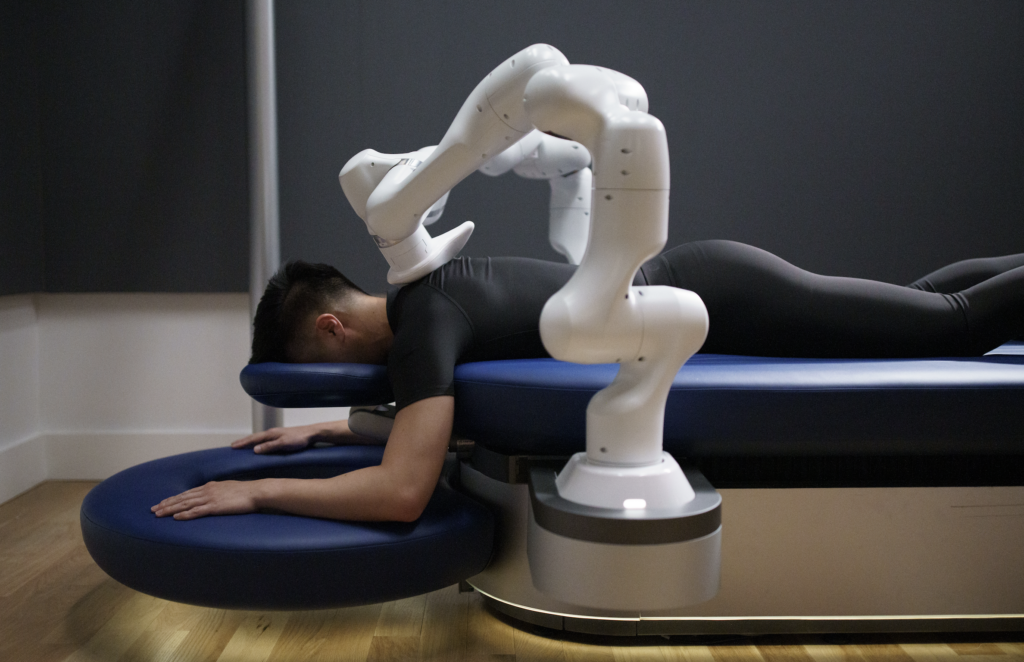 Aescape collabed with human massage therapists to develop these silicone coated robot arms.