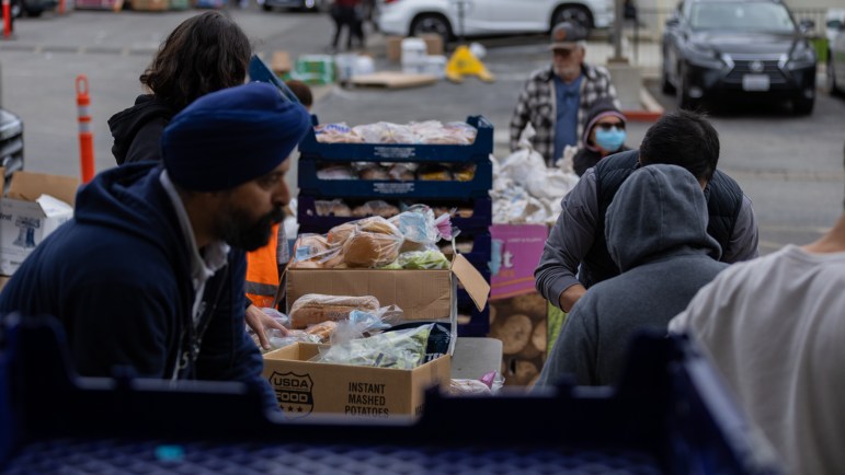 Volunteers pass out food during a distribution event by Seva Collective on Nov. 22, 2025. Credit: ERIKA TAYLOR, Voice of OC