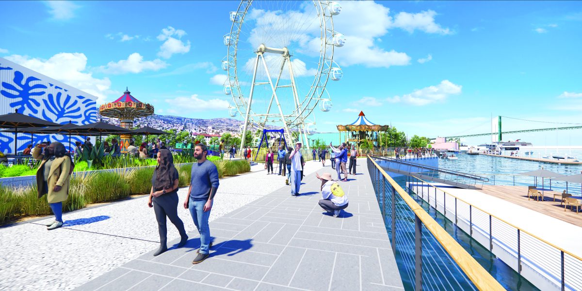 Now, a dozen years later, their project is coming to life. It’s called West Harbor, and it’s already creating a buzz the likes of which the waterfront has not seen since Ports O’ Call opened six decades ago. West Harbor includes over 200,000 square feet of restaurants, shops, and attractions, a brewery, a mile-long waterfront promenade, a 6,200-seat music amphitheater, a 175-ft Ferris wheel (the tallest in California), an expanded San Pedro Fish Market (with 3,000-person capacity), a dog park, pickleball/padel courts, an immersive cutting-edge art gallery, and an array of waterside activities, including harbor cruises, a 1,200 ft. courtesy dock (the longest in Southern California), fishing, water taxis, and floating attractions, such as a spa on a barge, and a tiki bar on a barge. Some of West Harbor is opening now for business, and the rest is expected to be fully operational in 2026.