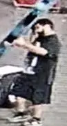 The suspect is described as having a medium build and full beard. At the time of the incident he was wearing a black T-shirt and black shorts, according to police.