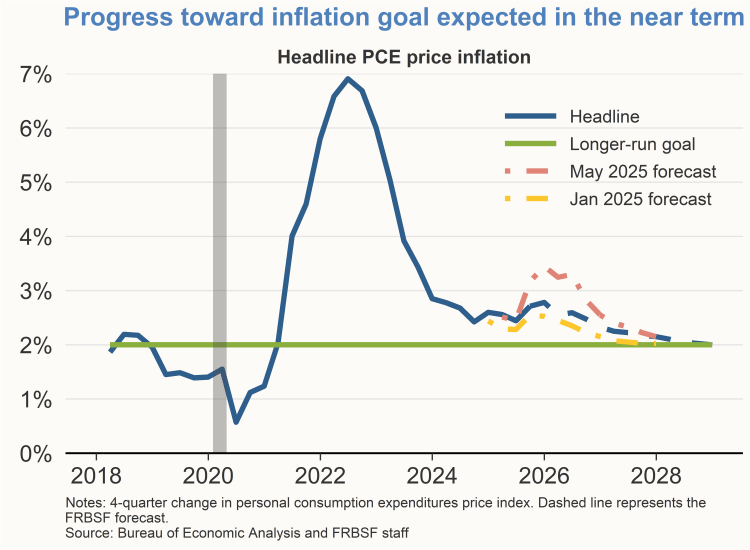 All together, we expect four-quarter headline PCE inflation to slow to 2.3% by the end of 2026, followed by a further decline, and by the end of 2027 approaching 2%. While this projection is more favorable now than in May 2025, the current projected inflation path remains somewhat elevated relative to our projection at the start of 2025.
