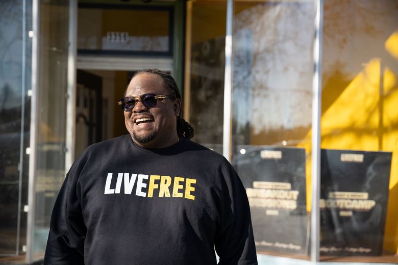 Kentrell Killens, field services director, outside the Live Free office in Berkeley on Jan. 12, 2026. Credit: Florence Middleton for Berkeleyside