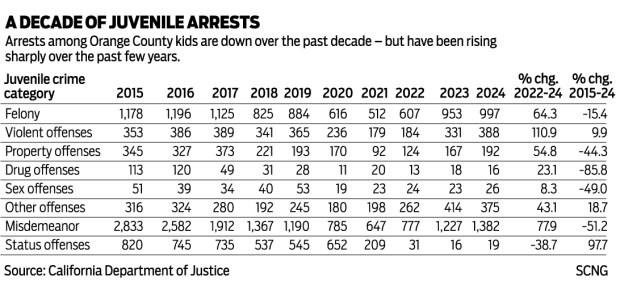 Officials at Orange County Probation also concur. The data “strongly suggests a rebalancing following the COVID-19 period, rather than a sustained increase in youth crime. Felony, violent, and other offense categories appear to be stabilizing closer to pre-pandemic levels after the artificial lows of 2020–2021. The 2020-2021 period does not represent a stable baseline, but a period of suppressed system activity,” said spokesperson Aashi Patel by email.