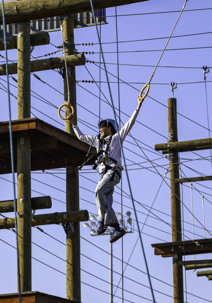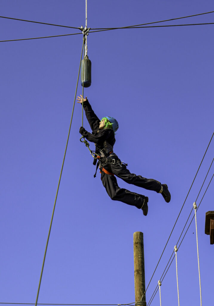 Even the adults joined in. While stepping into her own harness, Fisher said the program’s leaders need to practice what they preach, and if they ask students to rise to the challenge, they should too.