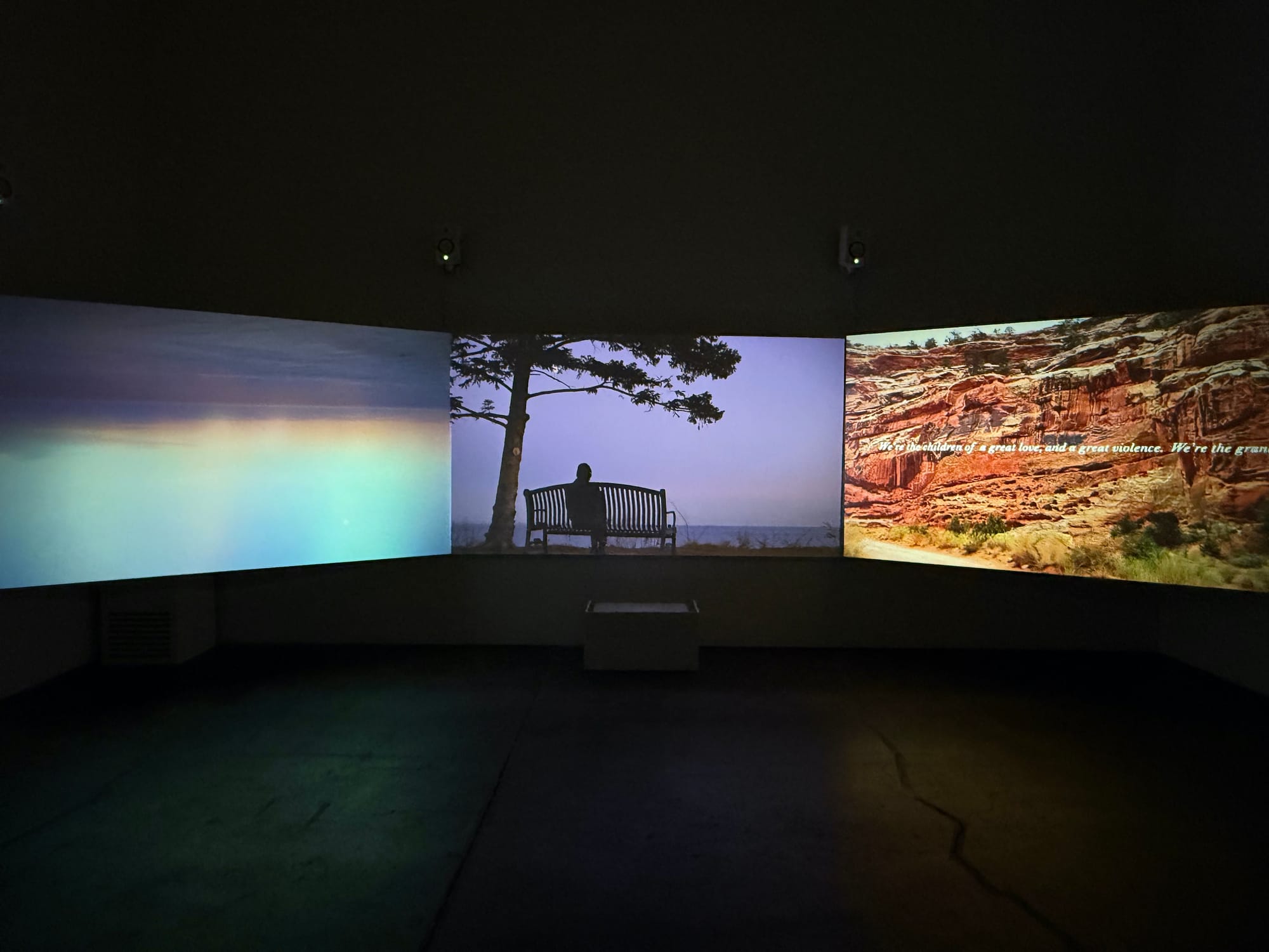Installation view of Sky Hopinka: Sonic Transmissions at Slash, San Francisco (photo Natasha Boas/Hyperallergic)