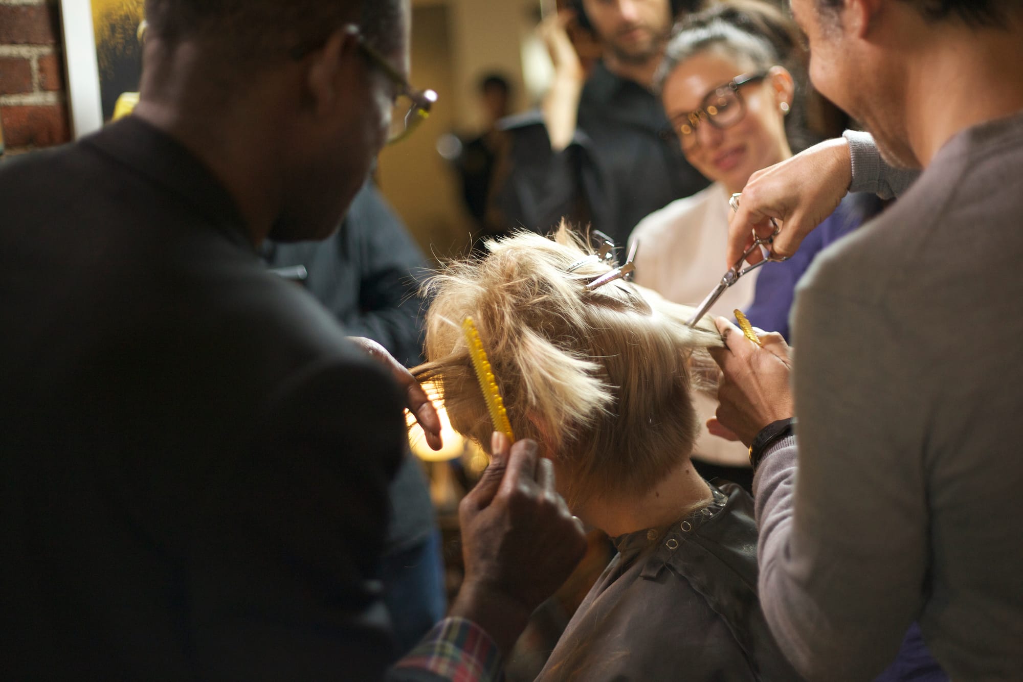Koki Tanaka, “A Haircut by 9 Hairdressers at Once (Second Attempt)” (2010) (photo courtesy the artist, Vitamin Creative Space, Guangzhou and Aoyama Meguro, Tokyo)
