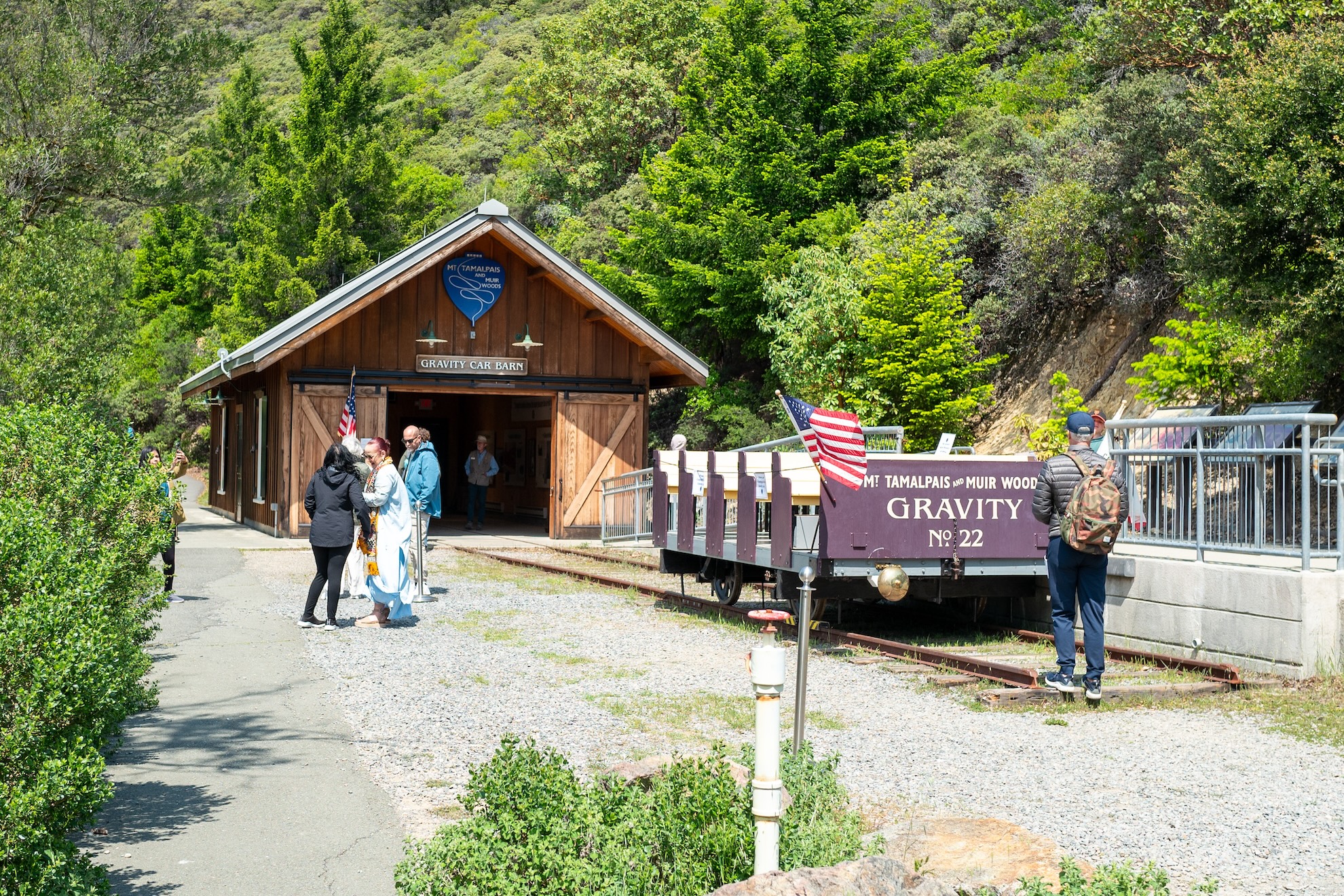 Historic cars and barn of the Mt Tamalpais Gravity Railroad, Mill Valley, California, May 3, 2025. (Smith Collection/Gado via Getty Images)