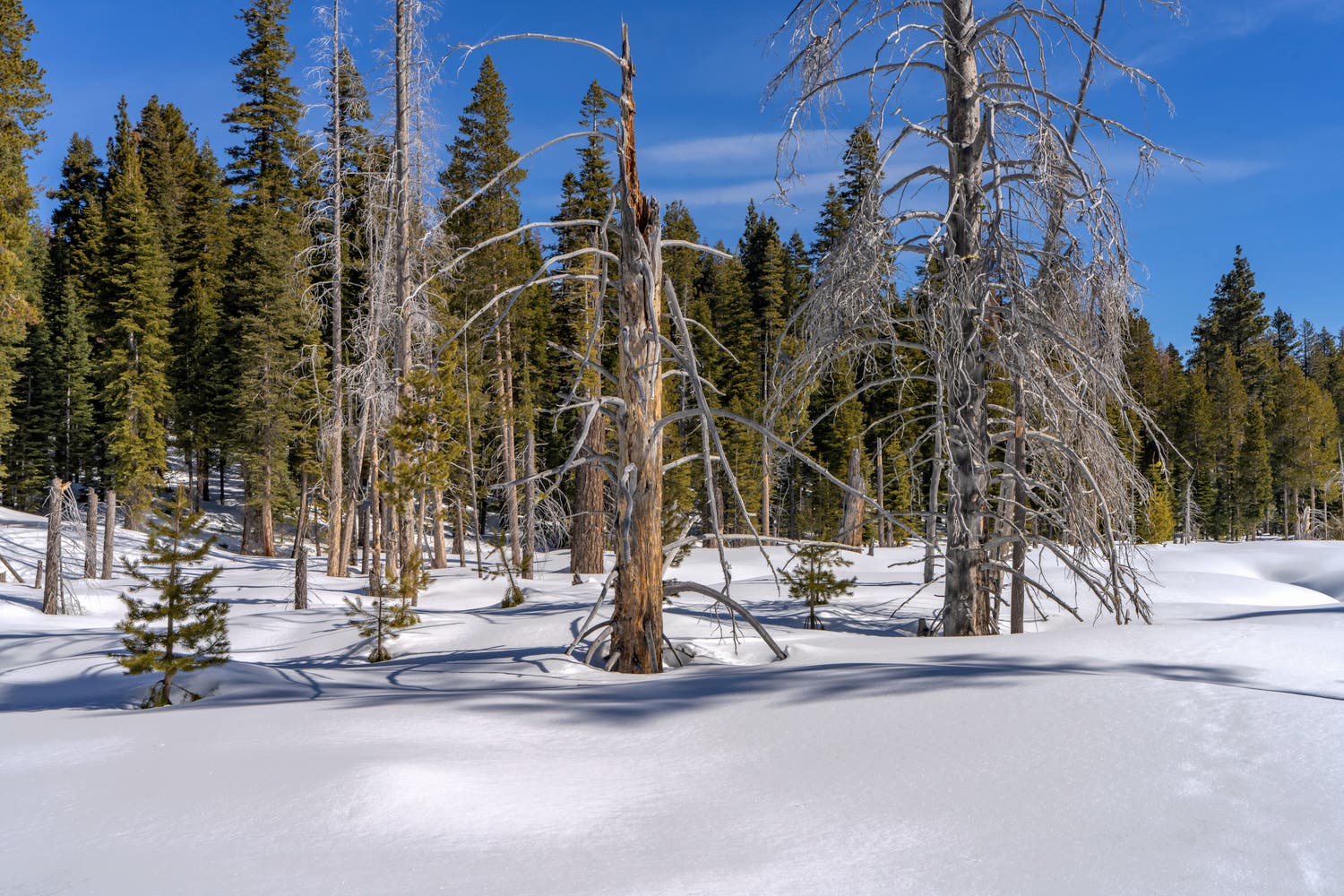 Camping in Sugar Pine Point Campground and want to hike among the recent snow? Or, just making a day trip and want a peaceful, snowy hike along a creek? This nature trail will satisfy. Note: Bears are common in this area. Follow all bear safety protocols, even in winter.