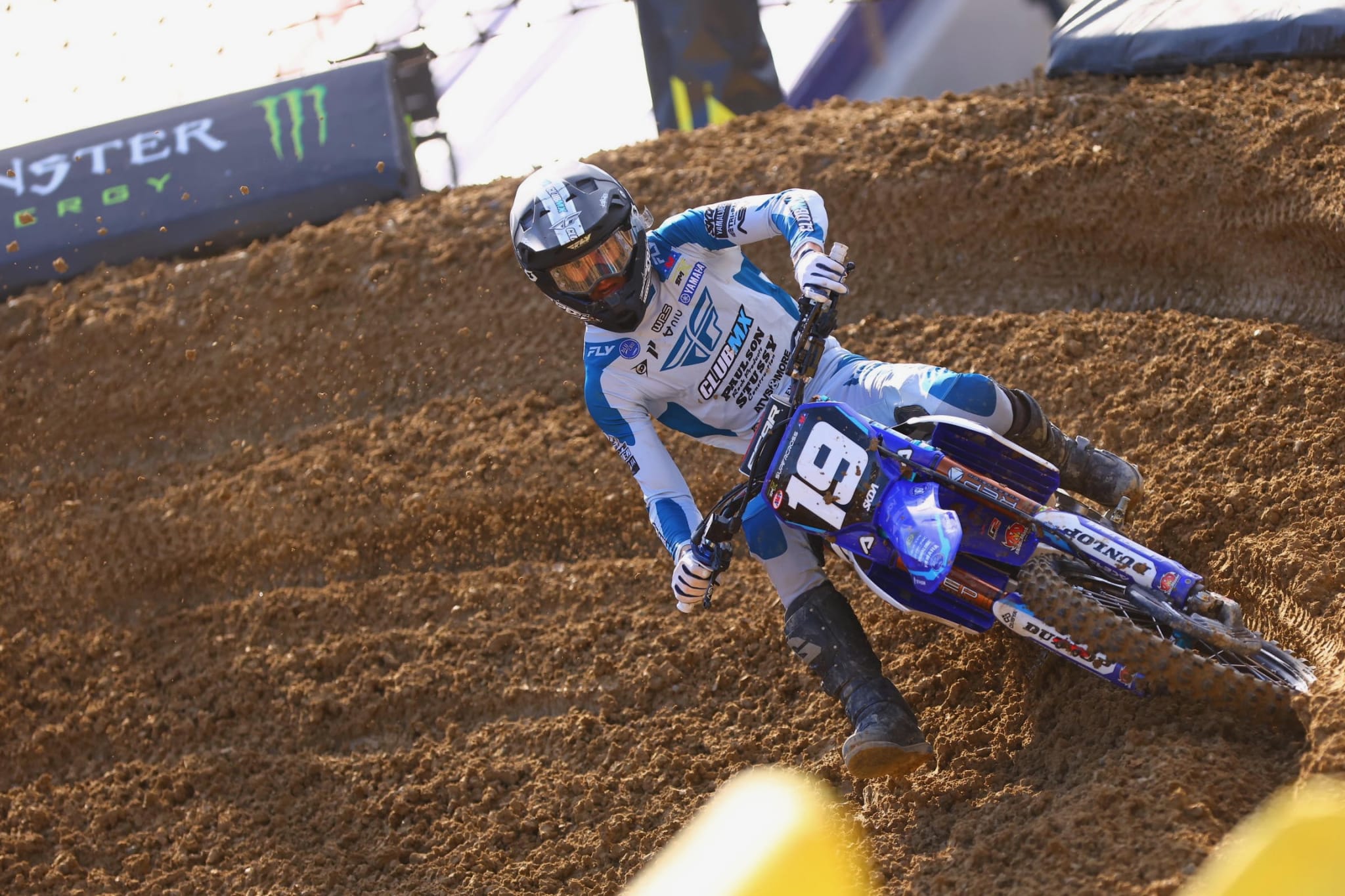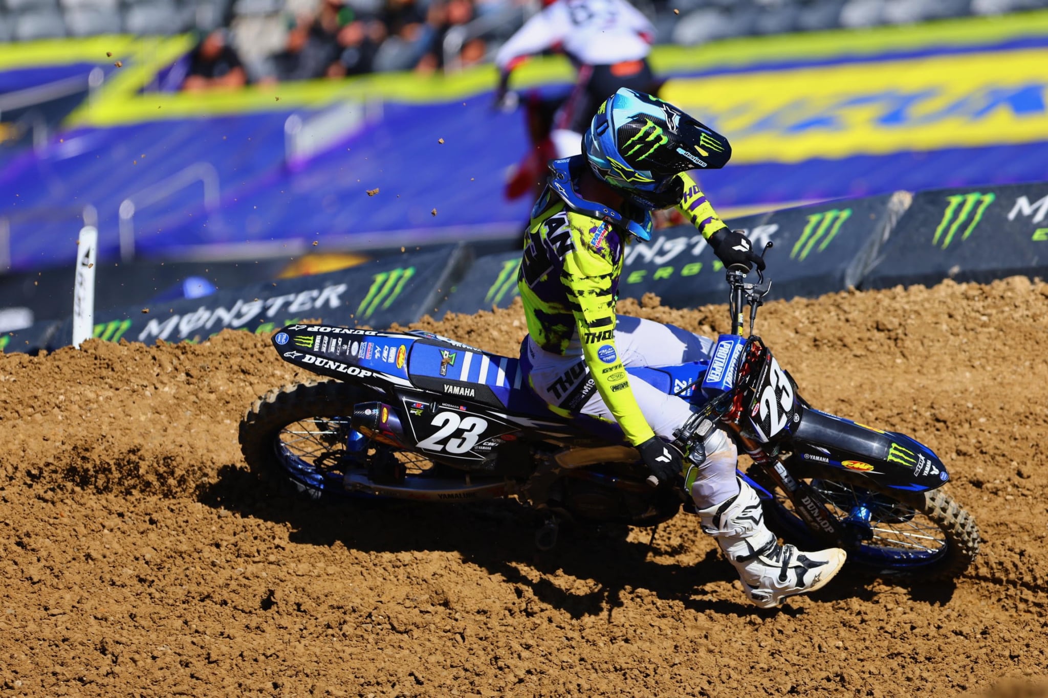 In the second heat, it was Max Anstie getting out front early. Max was followed by the rest of the Star Racing Yamaha team as both Haiden Deegan and Michael Mosiman battled behind him. Cameron McAdoo made some early moves and put himself into the fourth spot. Deegan would move into second and start the battle with Max Anstie. Deegan was on the gas, looking for every possible point on the track to make a move. Finally, Deegan made the pass stick and would begin to run away with the lead. Deegan was truly flying around the track.