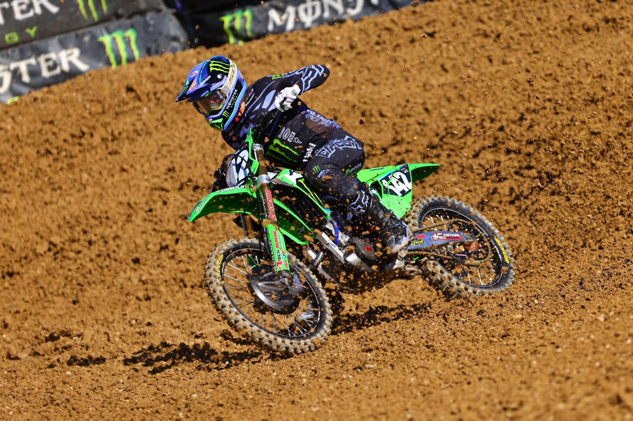 The heat race started with Hunter Yoder grabbing the holeshot, and he was followed around by his teammate, Max Vohland. Yoder and Vohland actually began to create a gap on the third-place rider of Chance Hymas. Also in the mix, sitting in the fourth spot was Robbie Wageman. Levi Kitchen was buried in the pack and slowly began moving through the field. As time began to wind down, Max Vohland made the move on Hunter Yoder for the lead, and he would continue to gain ground with the clear track ahead. Vohland would go on to take the win.
