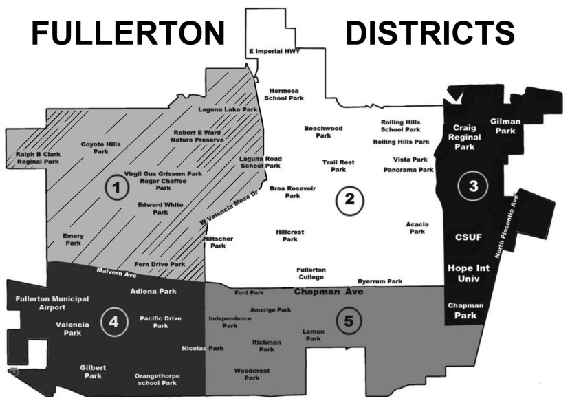 2020: Since 2020, all Fullerton City Council members have been elected solely by district.