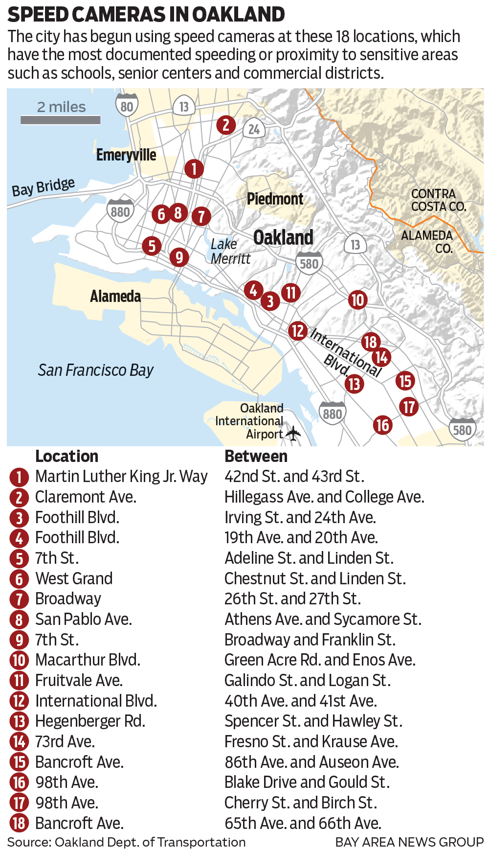 The cameras differ from Oakland’s automated license plate reader devices, which have generated controversy among the public over their use of artificial intelligence that scans images for all kinds of identifying details. Speed cameras do not use the same technology.