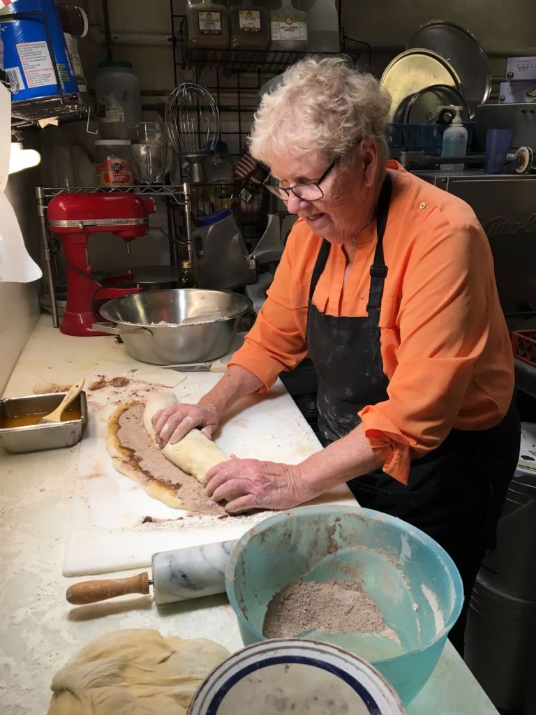 Ruth Henricks rolls dough. The Huddle is known for its cinnamon rolls. (Photo courtesy of the Henricks family)