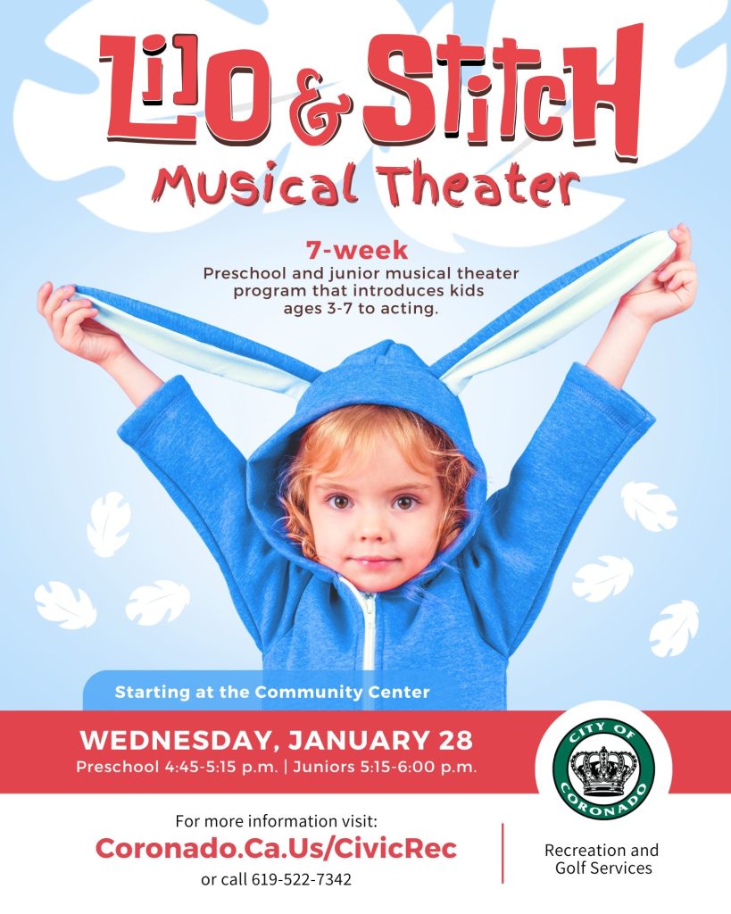 Bring the magic of Lilo and Stitch to life in our Preschool and Junior Musical Theater program at the Coronado Community Center.