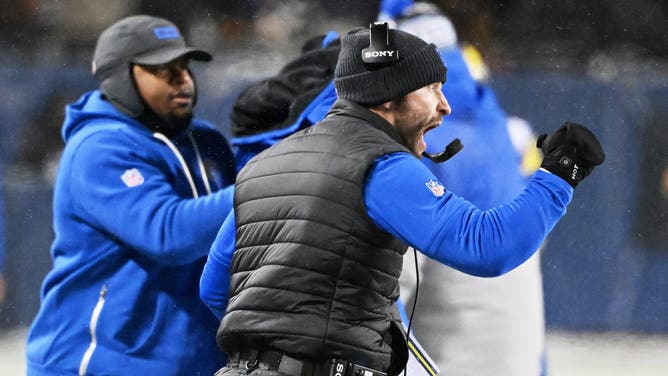 Jan 18, 2026; Chicago, IL, USA; Los Angeles Rams head coach Sean McVay reacts after a defensive stop against the Chicago Bears during the fourth quarter of an NFC Divisional Round game at Soldier Field. Mandatory Credit: Matt Marton-Imagn Images