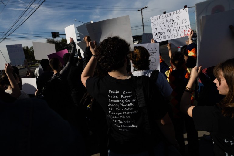 “ICE is something that is terrorizing our community and we’re not going to be the next Roosevelt Minneapolis,” said Kaitlyn, another Garden Grove student, pointing to Border Patrol agents clashing with school leaders at Roosevelt High School in Minnesota following Good’s killing.