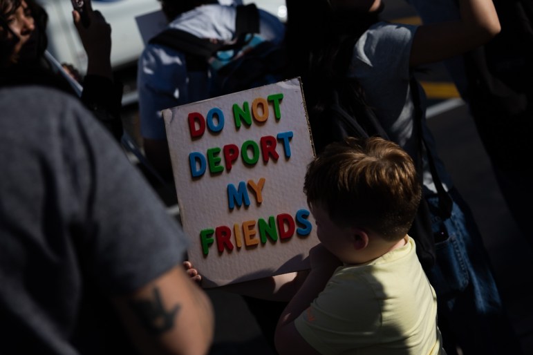 “We are upset that we’re seeing our neighbors get taken without any due process. We feel scared. It’s disrupting our education,” she said. “We are taught to use our voice, so we’re out here today to use it to peacefully demonstrate and hopefully show our community that we’re here and we’re supporting them.”