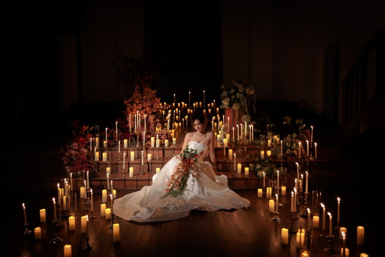 Bride Aislin Oakley inside the historic North Chapel. (Photo by Jane & Kolya Shukan/Theshukans.Weddings)