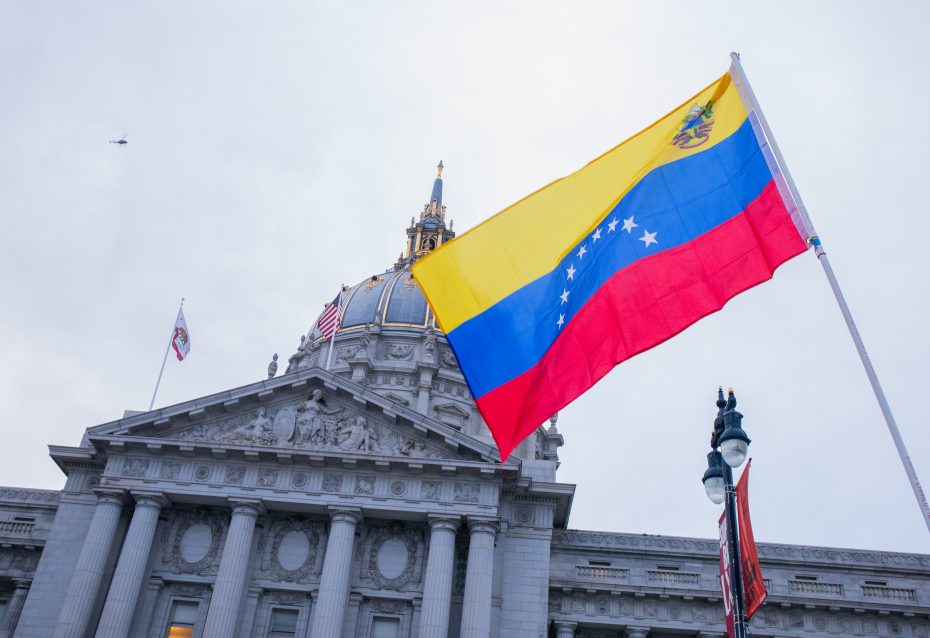 A Venezuelan flag flies in front of City Hall on Tuesday. Photo by Mariana Garcia.