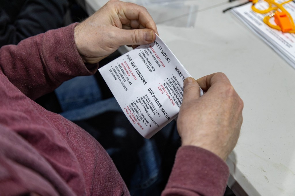 If people do see ICE agents patrolling or detaining individuals, they are encouraged to call or text the rapid response number listed on the Linktree, which is tied to advocacy group Unión del Barrio. The document with the phone number also contains simple instructions of what type of information to gather, how to support someone being detained, how to use the whistle to efficiently alert people and additional helpful information.