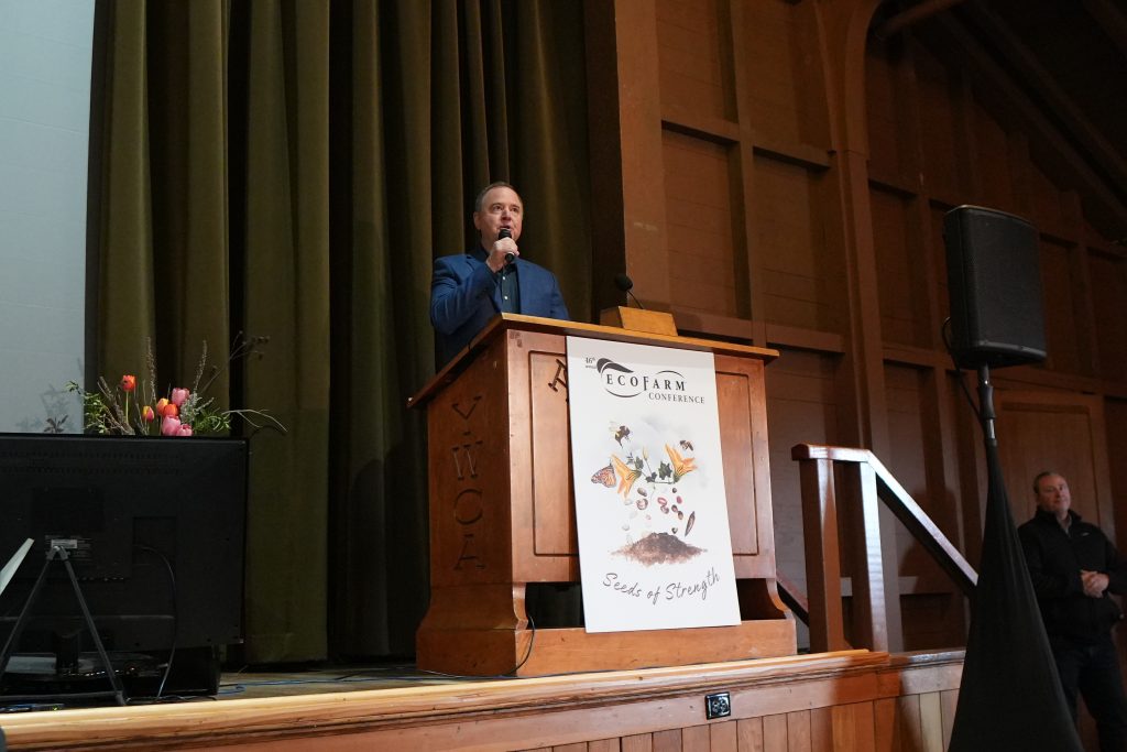 Thank you, Leonard, for that warm and very kind introduction. Thank you for inviting me. Thank you for feeding me and my family. And thank you for not making me wear a suit today. I appreciate the important work you do, Leonard, and whole Board of Directors of EcoFarm, and your powerful advocacy on behalf of California’s farming community – of its current generation, and its next generation. Thank you to all the EcoFarm organizers for putting this conference together and for serving as champions for California’s food and farm systems.