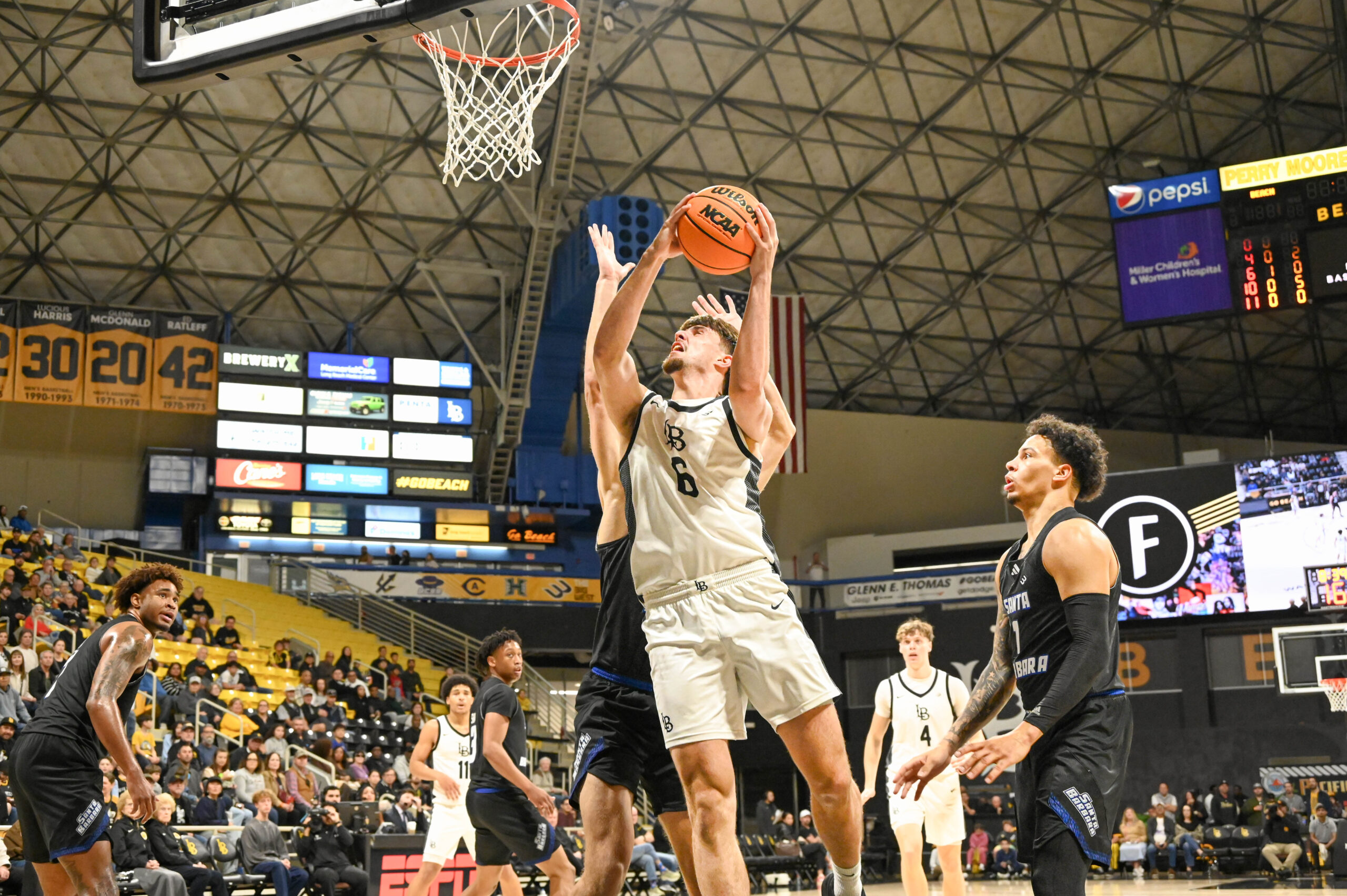 Long Beach State men’s basketball fell just short of a major comeback victory against UC Santa Barbara in a nail-biting 74-71 loss in front of 2,351 at LBS Financial Credit Union Pyramid on Saturday, Jan. 24.
