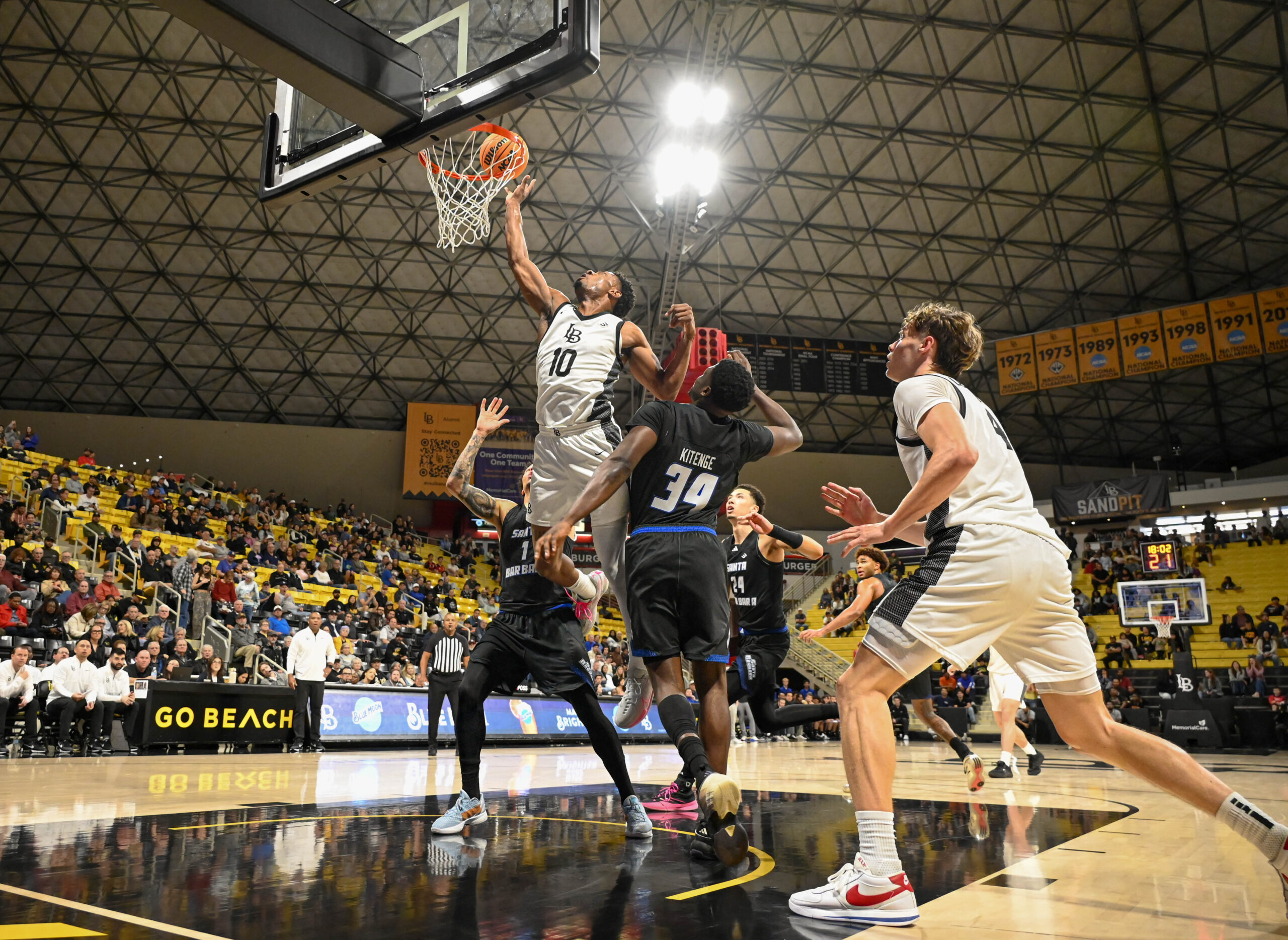 After dropping 26 points to lead all scorers in the previous meeting between UCSB and LBSU, Gauchos senior guard Aidan Mahaney picked up where he left off against The Beach, scoring the first four of six for UCSB.