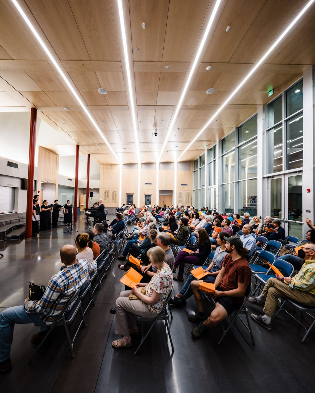 Another significant project is the Fresno Pacific University Warkentine Culture & Arts Center in Southeast Fresno. Completed in 2022, the center gathers the university’s art, music, and theater programs into a single, purposeful building. A 500-seat auditorium with retractable seating anchors the project, joined by a black box theater, gallery, and a full complement of back-of-house spaces. More than an academic facility, the building operates as a civic threshold, with a generous lobby that doubles as a student commons and welcomes the broader community inside.
