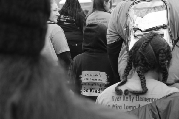 Mira Loma High School students assisted Dyer Kelly Elementary students during the march as the students carried homemade signs. One elementary student held a sign that said “‘I have a dream’ Dr. Martin Luther King.” (Kadreanna Walker)