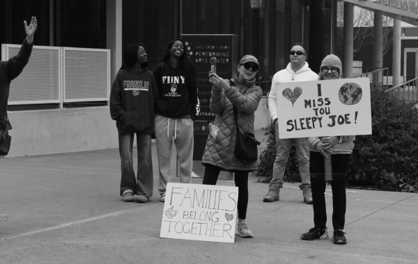 As the marchers reached their destination at the Safe Credit Union, they were greeted with many congratulating them for marching and holding up signs. One group held signs that said “I miss you Sleepy Joe” and “Families belong together.” (Kadreanna Walker)