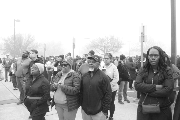 Participants gathered early in the morning at Sacramento City College for the MLK365 “March for the Dream” event. The crowd listens to the various guest speakers as they wait for the march to begin. (Kadreanna Walker)
