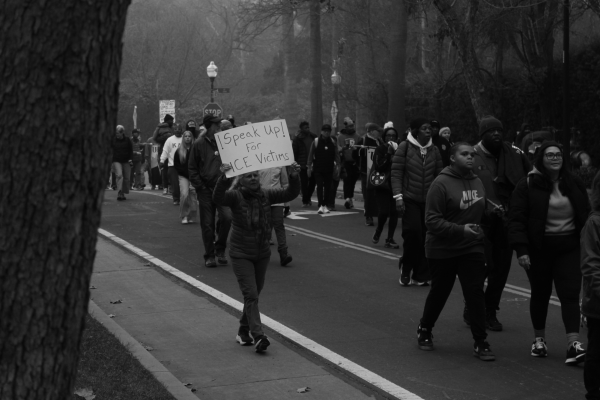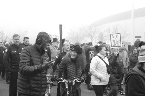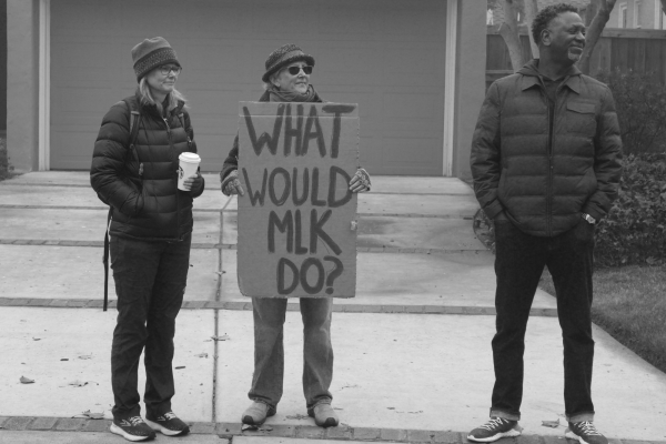 Though many people chose not to walk, they did show their support along the way by standing on the sidelines with signs. One group held a sign that said “What would MLK do?” (Kadreanna Walker)