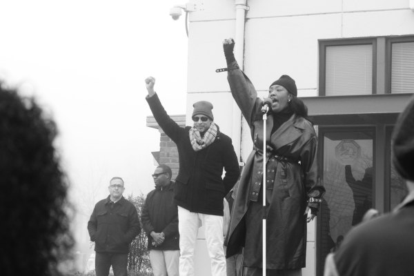 The Sacramento community came together to celebrate Martin Luther King Jr. day by joining MLK365’s “March for the Dream,” which started at Sacramento City College on Jan. 19. Before the march, educator and host Cline Moore (left) introduced singer/songwriter Vadia Rhodes (right) who sang the Black national anthem, “Lift Every Voice and Sing.” (Kadreanna Walker)