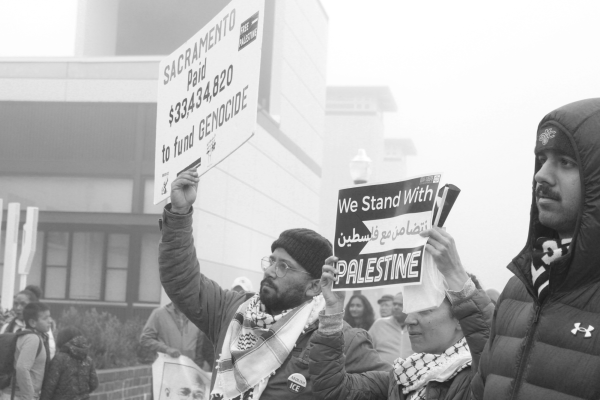 While Sacramento’s mayor Kevin McCarty spoke about unity and thanked the crowd for showing up for the community, there were some shouts and signs held up from people who wanted to acknowledge Palestine’s ongoing struggles. (Kadreanna Walker)