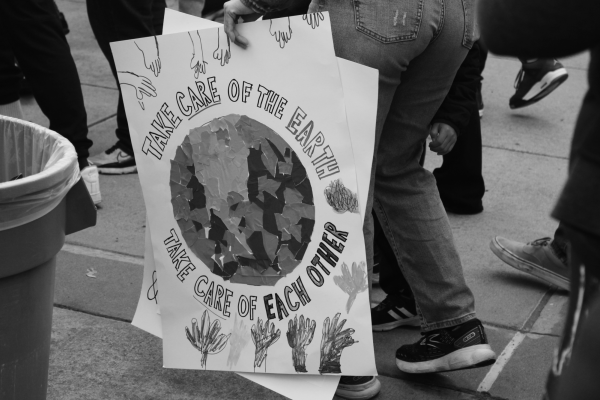 One marcher held a handmade sign that said “Take care of the earth. Take care of each other.”