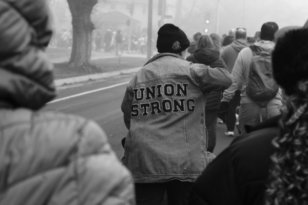 One participant wore a sweater that said “Union strong.” (Kadreanna Walker)