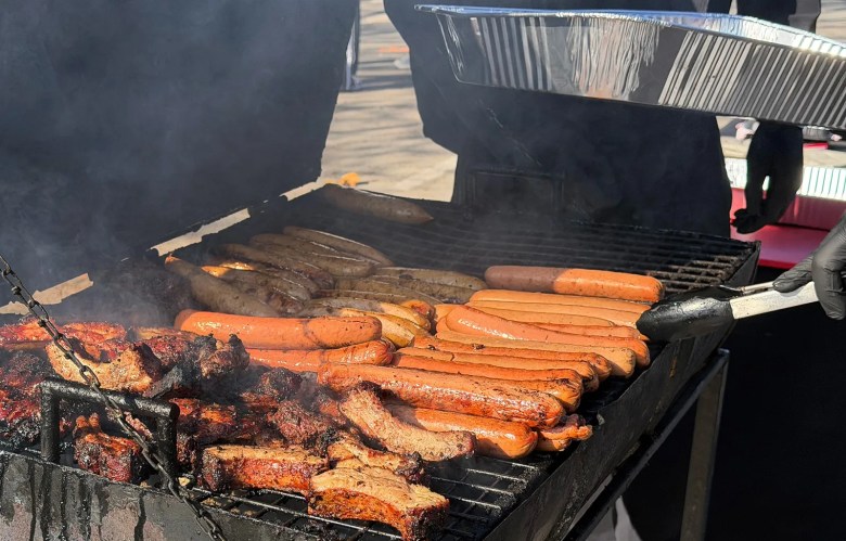 A streetside grill with hot dogs and ribs enticed passersby to stop at the new Winky Dinky Dogs location in Temescal. Credit: Ariel Nava Photography