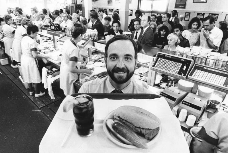 Philippe’s owner Richard Binder serves the lunchtime crowd in 1986Credit: Michael Haering/ Herald Examiner Collection/Los Angeles Public Library