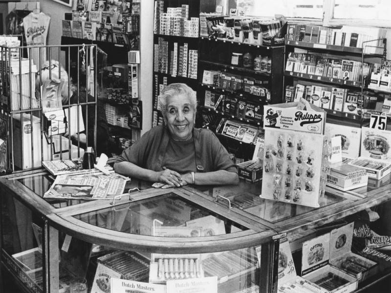 Mary Lou Obregon behind the candy counter at Philippe’s in 1986Credit: Michael Haering/ Herald Examiner Collection/Los Angeles Public Library