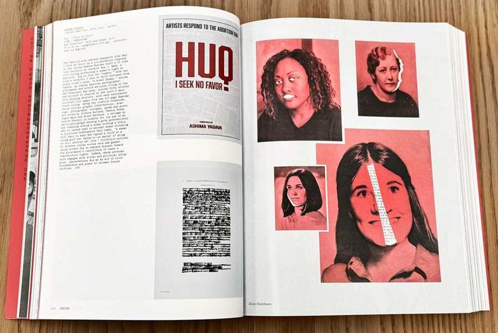 Instigated by the overturning of Roe v. Wade, Huq was a way for Yadava to reckon with the court’s draconian decision. “I needed to do something about that rage and helplessness I was feeling at the time,” she explains. “I reached out to a bunch of people [and found that] we shared that common sense of despair about what we were feeling.” On the printed pages of the docket, Yadava unleashed her anger, tearing them apart, making haikus from them, marking words within them—and found herself “weirdly empowered.”