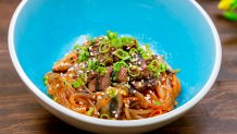 Kalbi short rib is the hearty part of Japchae Noodles; find the filling bowl at the Longevity Noodle Co.