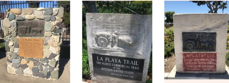 La Playa Trail Markers — Photos of various markers along the historic route connecting Old La Playa with Old Town and the Presidio. (Photos courtesy of the La Playa Trail Association website / with permission.
