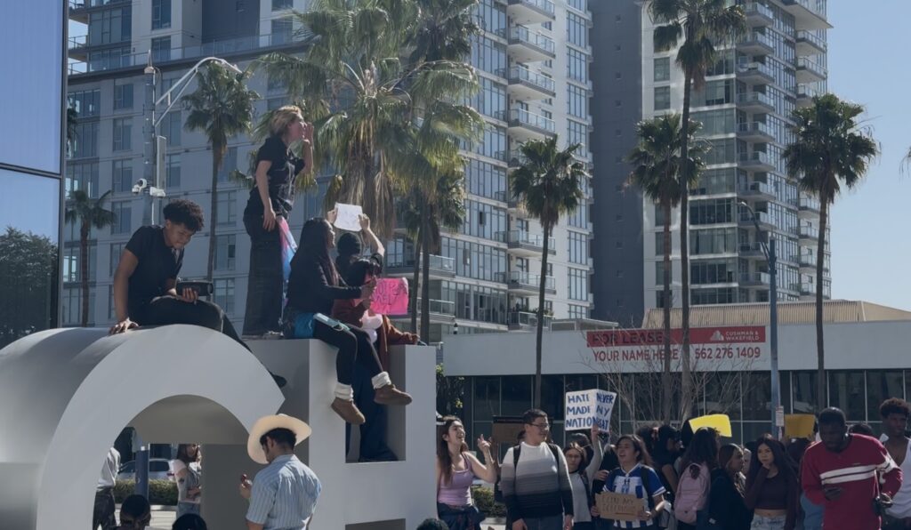 The incident occurred as hundreds of students gathered at Long Beach City Hall as part of “National ICE Out Day,” a nationwide day of action opposing federal immigration enforcement under the Trump administration. Many Long Beach Unified School District (LBUSD) students walked out of class to participate, school officials encouraged parents to talk with their children about the potential risks of leaving campus during school hours.