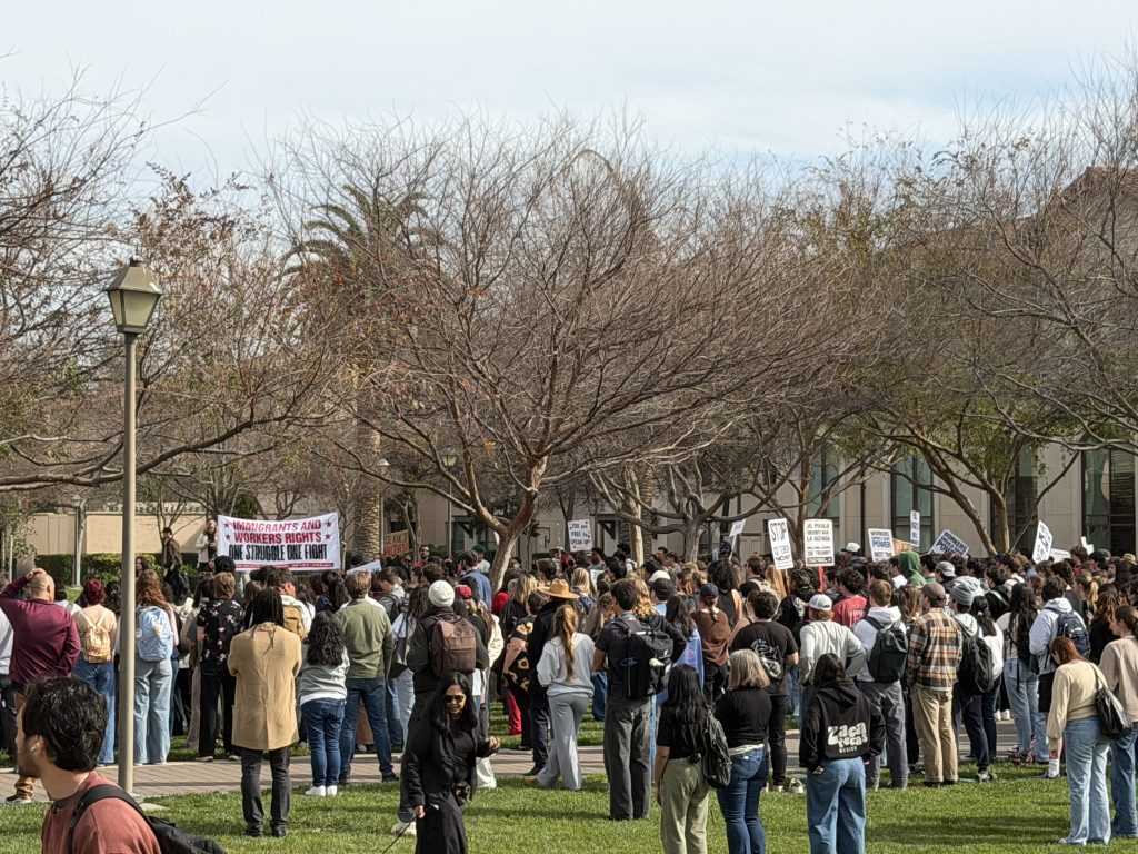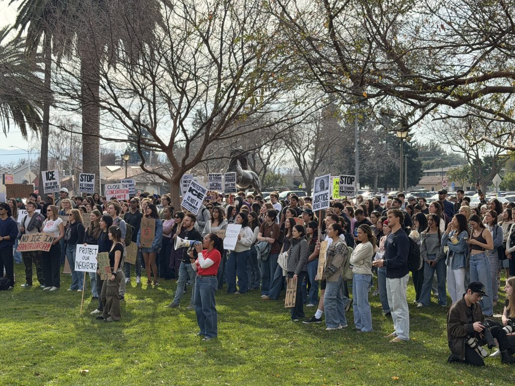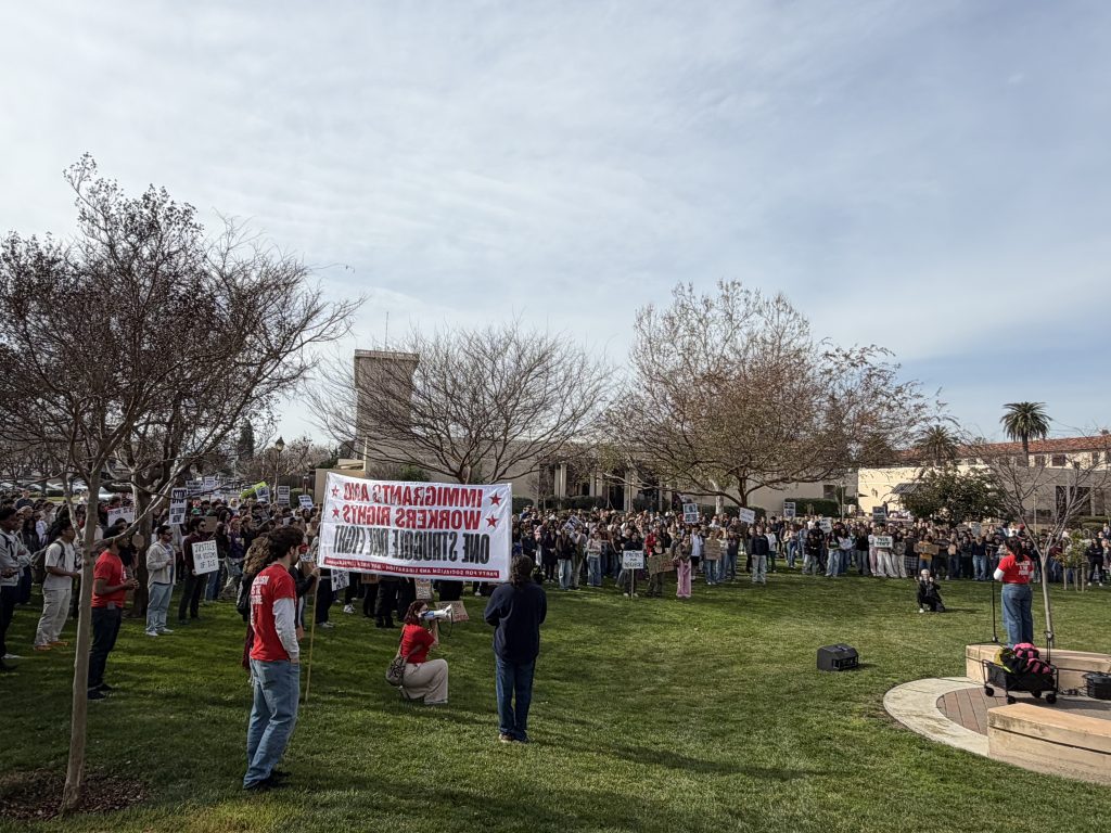 They arrived in small groups of twos and threes. A steady trickle of students gathered near the base of Santa Clara University’s landmark Bronco statue on Jan. 30 as part of a nationwide day of action.