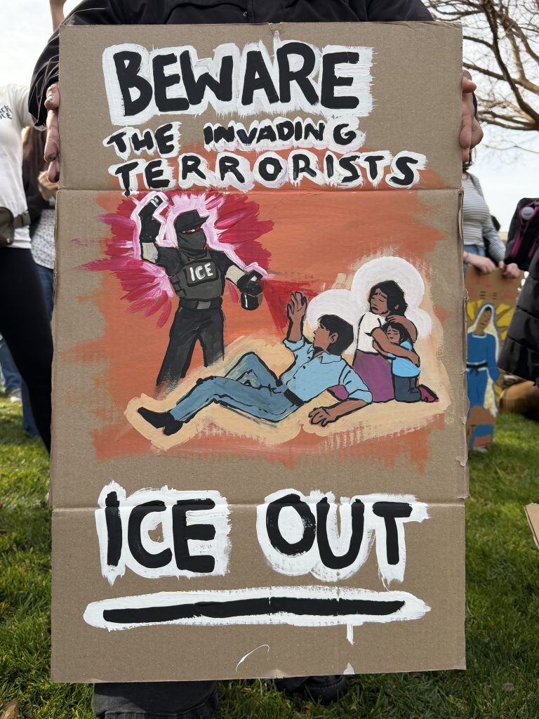 “Practically every policy Donald Trump stands for is in direct opposition to what we as student leaders and learners at a Jesuit institution are taught to cherish. His actions openly contradict our Jesuit values,” SCU ASB President Claire Krebs told the crowd. “If we truly wish to uphold our ideals of Cura personalis, faith that does justice and being people for and with others, we must then dedicate ourselves to doing all that we can to reject Trump’s actions and refuse to believe that the offenses we are seeing are normal. They are anything but.”