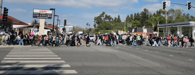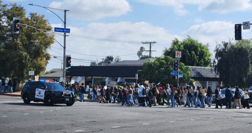 Hundreds of students from Fullerton High School took to the streets on February 6, marching down Chapman Avenue, Harbor Boulevard, and Berkley Avenue in a powerful protest against Immigration and Customs Enforcement (ICE). The demonstration, organized by students, aimed to raise awareness about immigration issues affecting their community.