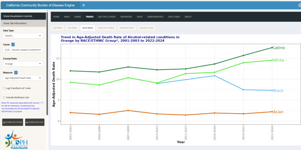 Number of deaths from alcohol-related conditions, 2020-2024 (California Department of Public Health https://skylab.cdph.ca.gov/communityBurden/)