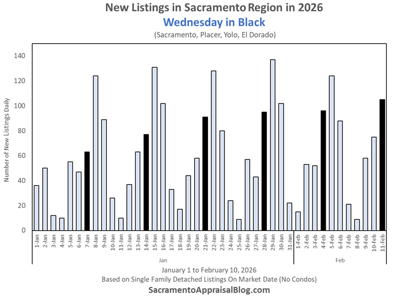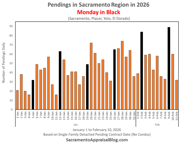 Here’s a look at the number of daily pending contracts in the Sacramento region so far in 2026, and check out the progression of growing demand from January. We had the highest Monday of pending contracts the day after the Super Bowl too.