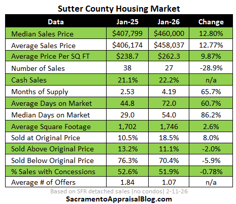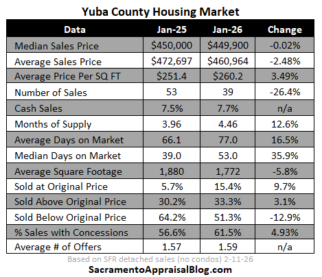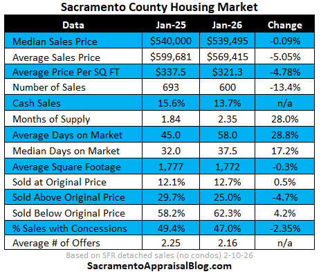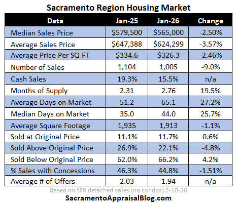 There is so much excitement about housing right now, but January was pretty tame with the number of sales being down nine percent in the region. Keep in mind, closed sales in January tell us about what got into contract in December, so we’re not looking at January stats to say much about the spring. We’ll start to see 2026 spring vibes much more in March numbers. Still though, the housing narrative has felt a little hotter than the market so far in 2026, whether we’re looking at closed sales in January or the number of pendings so far this year. I do think the market has gotten tighter though as I wrote about last week. It just hasn’t been an explosive liftoff.