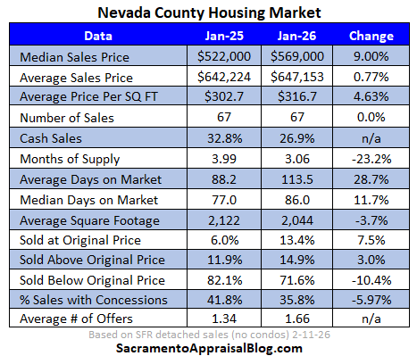 Nevada County is another example of not enough sales. I usually compare this county in sixty-day chunks, and I’ll likely go back to that. Month to month is just too wonky. The wrong narrative is that prices are up 9%.